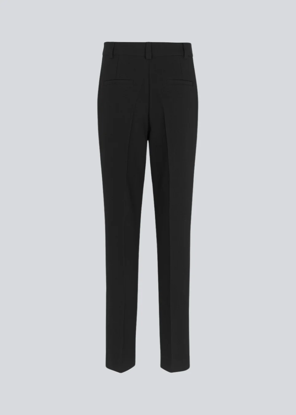 Gale straight pants i sort er en herreinspireret buks med lige, smalle ben. Buksens design holdes klassisk med pressefolder og en mellemhøj talje. Modellen er 173 cm og har en størrelse S/36 på Indersøm (S/36): 82 cm Bukserne forlænges med 0,5 cm for hver størrelse.