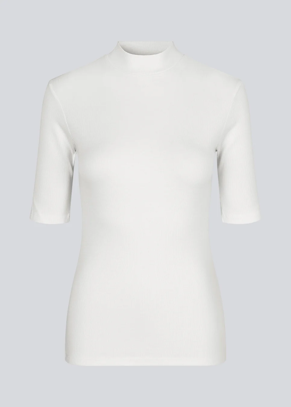 Kortærmet hvid t-shirt med høj hals. Krown t-shirt i farven Porcelain er i rib kvalitet og er tætsiddende i pasformen. Krown t-shirt er en klassiker i enhver garderobe.