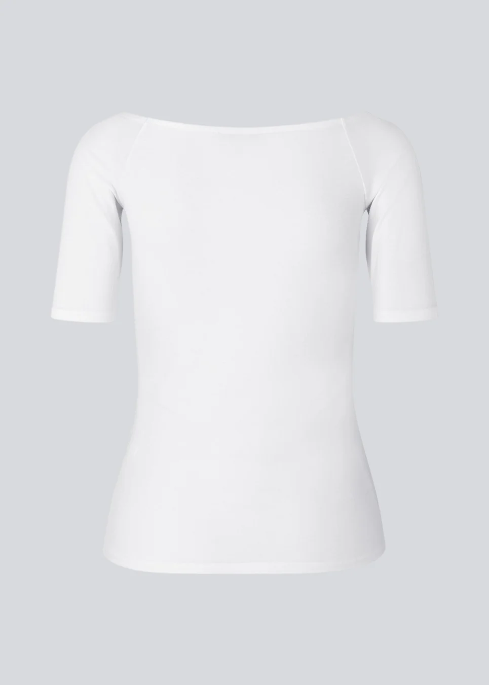 Tansy top i hvid har et enkelt udtryk med en bred udskæring både for og bag og har smalle ærmer. Toppen er en smal model, der sidder tæt uden at være stram.